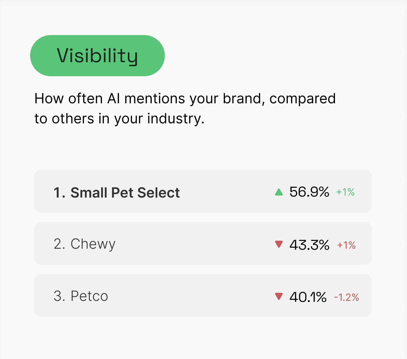 We run thousands of structured prompts daily across multiple AI engines, simulating a wide range of user intents tied to your brand, category, and competitors. We analyze how you’re positioned in outputs — including answers, summaries, side-by-sides, and recommendation contexts. Our system scans for frequency, sentiment, source attribution, and competitor proximity. The result is a multi-dimensional visibility map, which we translate into precise strategy and execution.