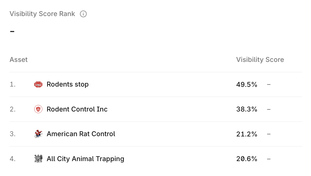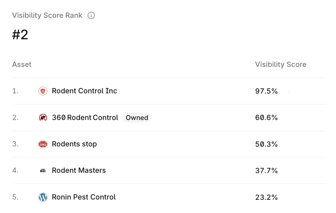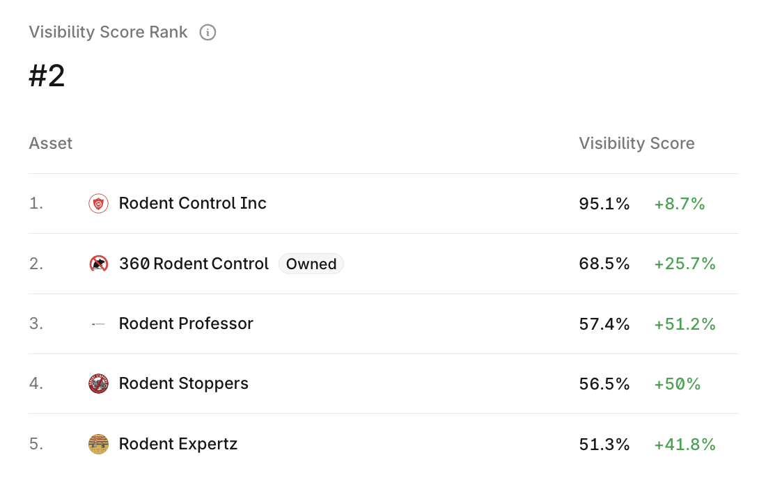 In just 5 Months, 360 Rodent Control gained 68.5% Visibility on ChatGPT, the 2nd Most Recommended brand.