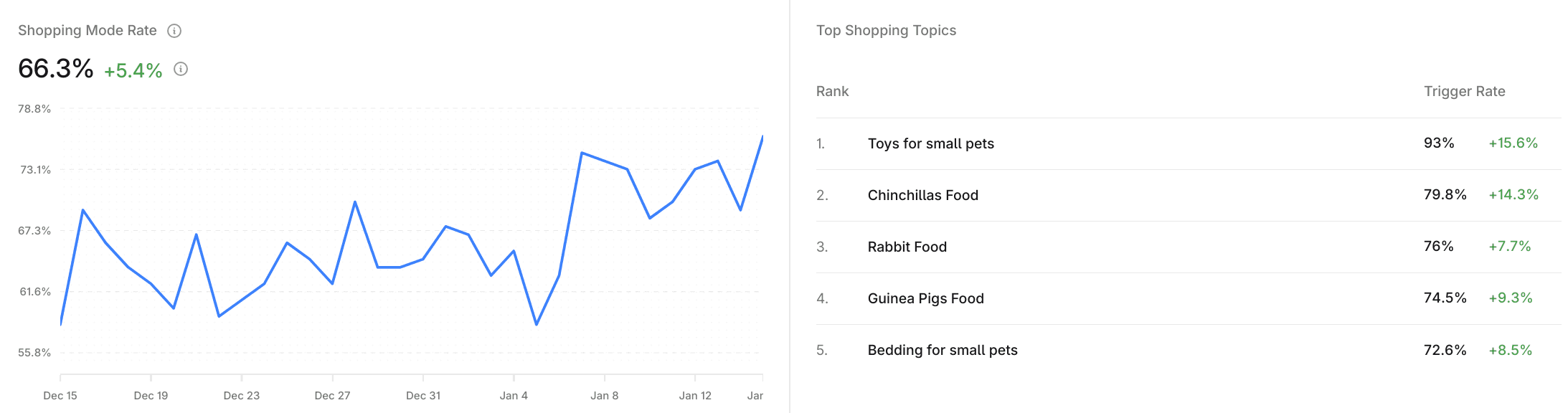 • Identifying AI presence gaps by category and intent (comparison, safety checks, “specific for my guinea pig” questions, and category prioritization)