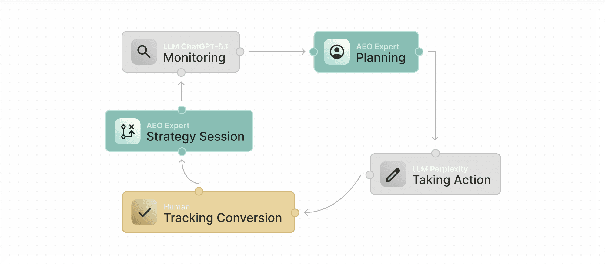 And all of it is guided by an AEO expert who ensures quality, accuracy and strategic alignment. Think of it as your always-on optimization engine.